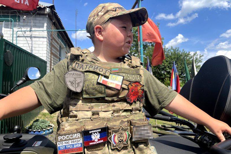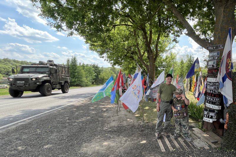В селе Каменка Курской области, недалеко от границы с Украиной, у самой дороги стоит девятилетний Сережа Боев - в камуфляжной кепке с надписью «Z», бронежилете, подаренном бойцами, с горящими глазами.