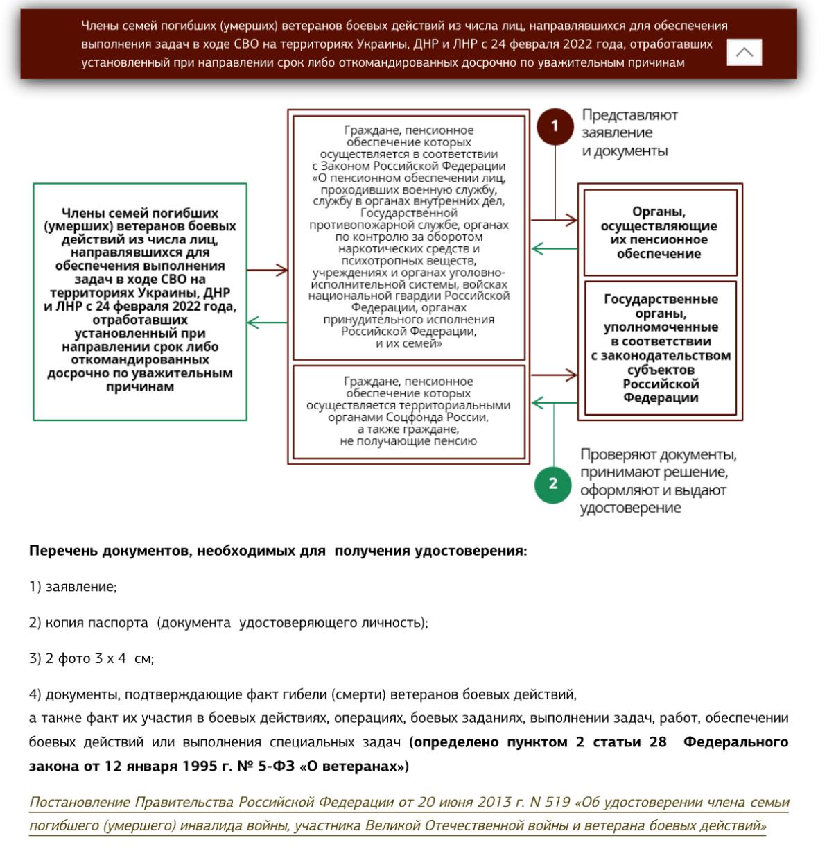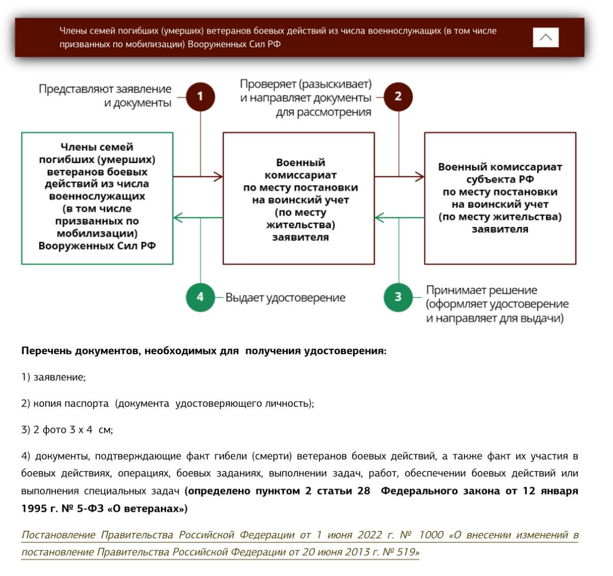 Выдача удостоверения члена семьи погибшего ветерана боевых действий производится на основании документов, подтверждающих факт участия в боевых действиях, а также факт гибели.